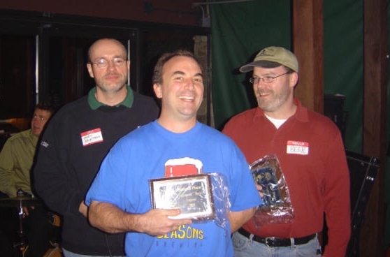 ![]() LtoR: Owen Ogletree (head judge), Dennis Lang (5 Seasons owner), and Ted Hull (GCBC Organizer). Photo by Fred Scheer. |