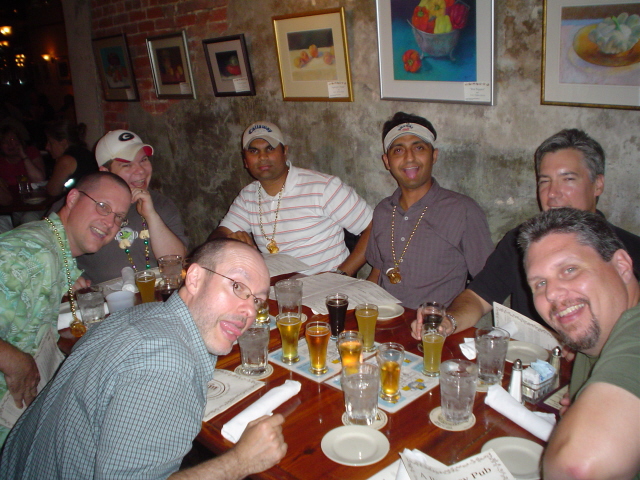 Owen Ogletree has enjoyed taking friends on beer tours of New Orleans since 1996. This is a photo album of our most recent trip to The Big Easy. The group was comprised of (L-R in photo above) Don Beistle, Owen Ogletree, Thel Melton, Nick Allen, Ritesh Patel, Jeff Rapp and Sachin Patel (photo by Kerri Allen). The trip was extremely fun, and the group was impressed with how well the tourist spots in New Orleans had recovered after Hurricane Katrina. The food, music, atmosphere and wonderful places to enjoy fine beers in New Orleans are delightful. Let the good times roll! Text by Owen Ogletree / Photos by Owen Ogletree and Kerri Allen - Posted July, 2007 |